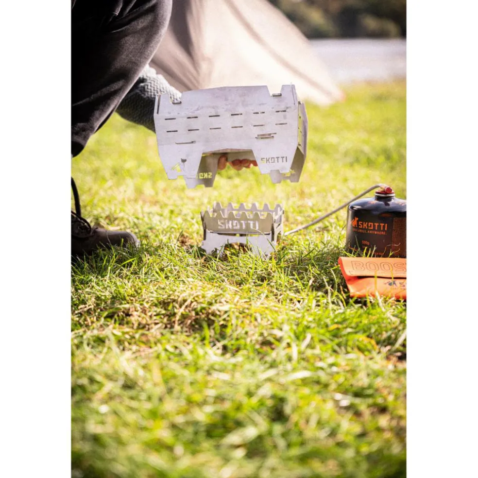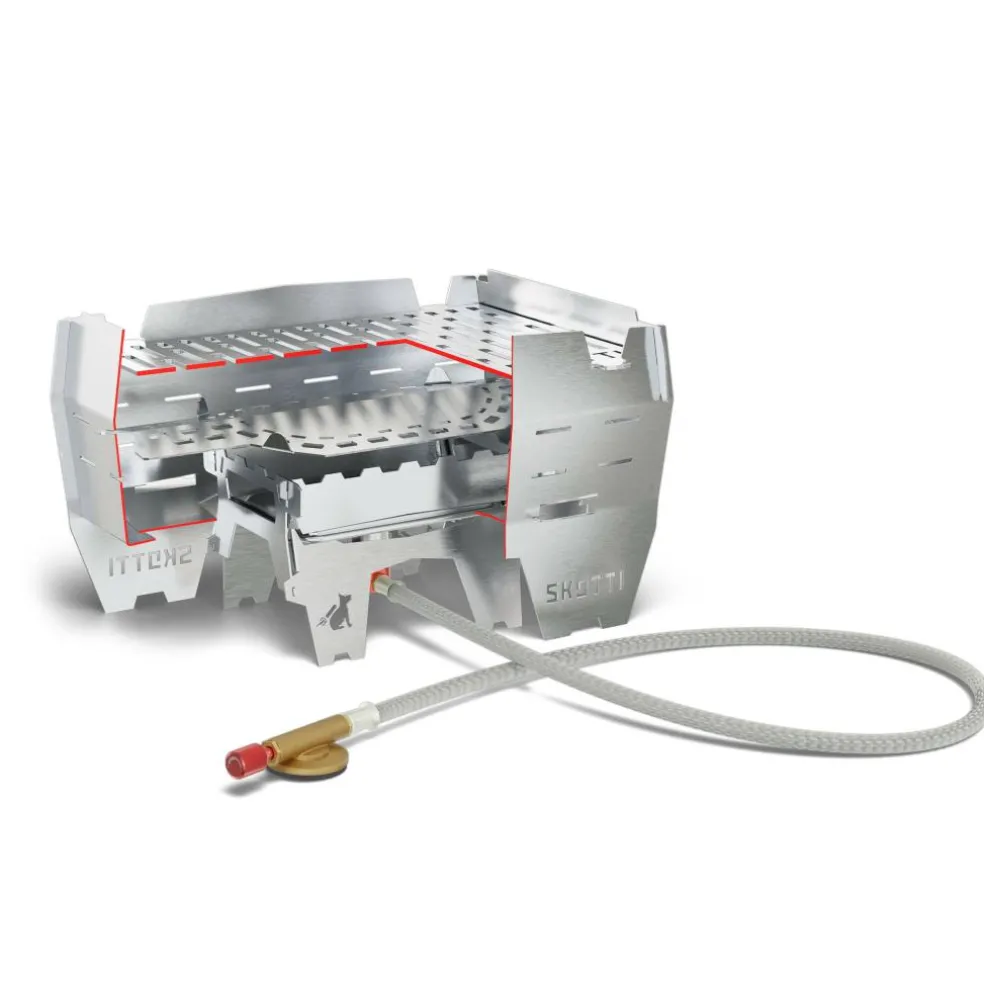 De SKOTTI Mini Grill houtskoolbarbecue zilver is een zeer compacte grill die u kunt gebruiken in combinatie met hout of houtskool. Deze houtskoolbarbecue van SKOTTI is gemaakt van duurzaam roestvrij staal en kan omgetoverd worden tot gasbarbecue in combinatie met de los-verkrijgbare SKOTTI Booster gasbrander. U kunt deze barbecue als u klaar bent eenvoudigweg in de vaatwasser doen voor optimaal schoonmaakgemak. Bij deze houtskoolbarbecue van SKOTTI zitten twee zijpanelen, twee onderpanelen, één achterpaneel, één voorpaneel, een rooster en een draagtas met Quick Guide.