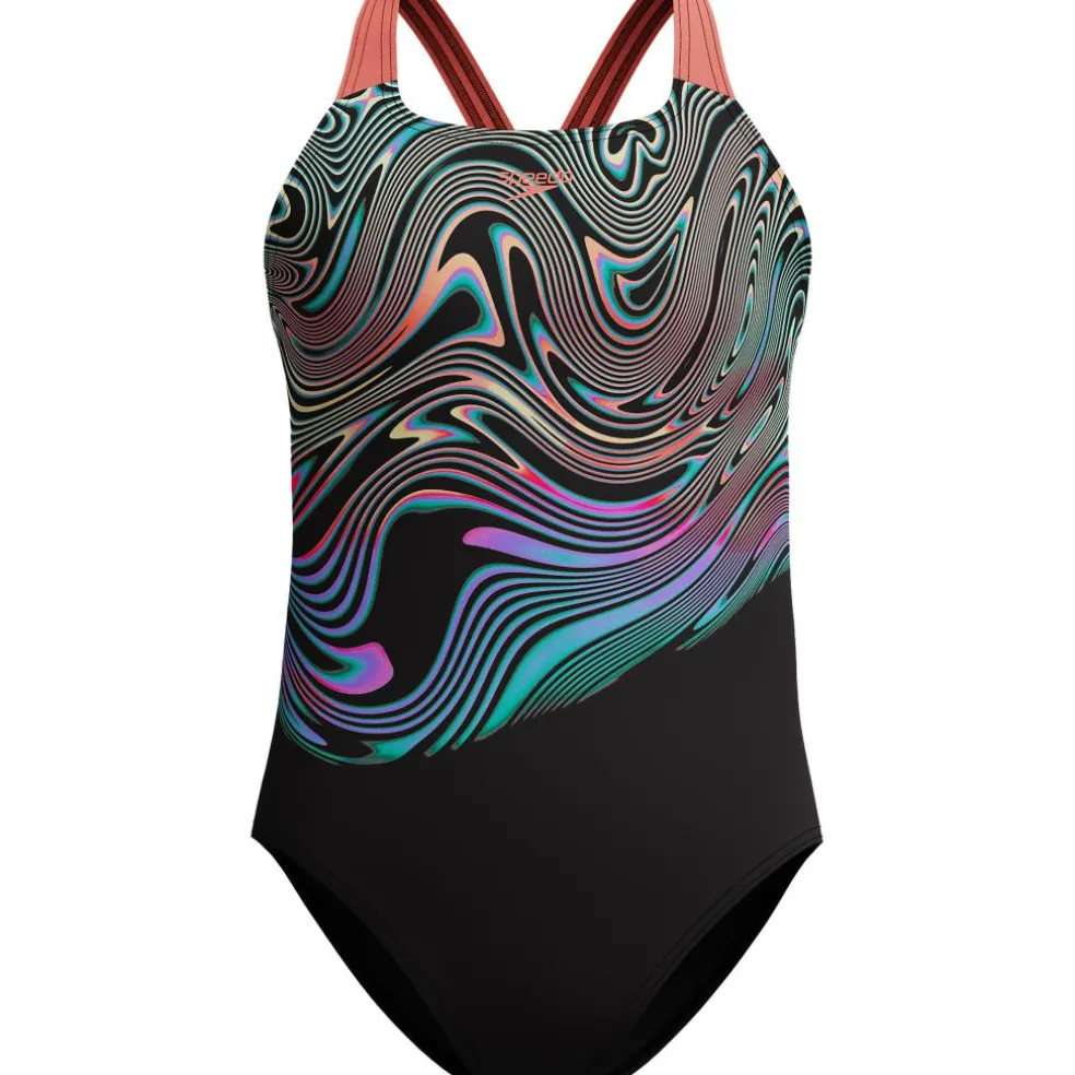 Het Speedo Placement Powerback badpak heeft een speciaal design bij de schouders en de rug, waarbij er optimale bewegingsvrijheid wordt ervaren door kinderen. Het sneldrogende materiaal is chloorbestendig, zodat het badpak er langer uit blijft zien als nieuw.
