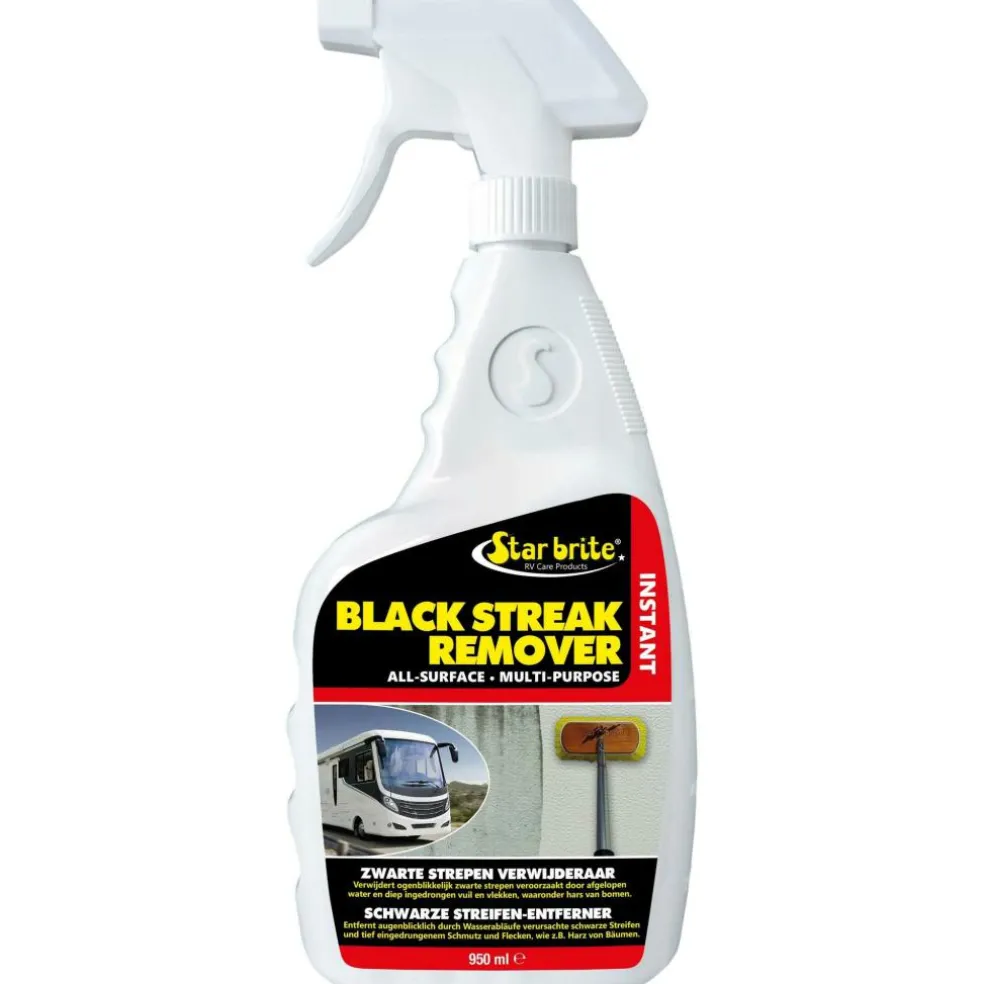 De Star brite Zwarte strepen verwijderaar en reiniger bevat geen bijtende zuren. Deze reiniger verwijdert zwarte strepen die veroorzaakt zijn door afgelopen water en diep ingedrongen vuil en vlekken van bijvoorbeeld hars. Deze reiniger is geschikt voor onder andere polyester, aluminium, metaal, kunststof en vinyl. De reiniger tast de waslaag en het materiaal niet aan.