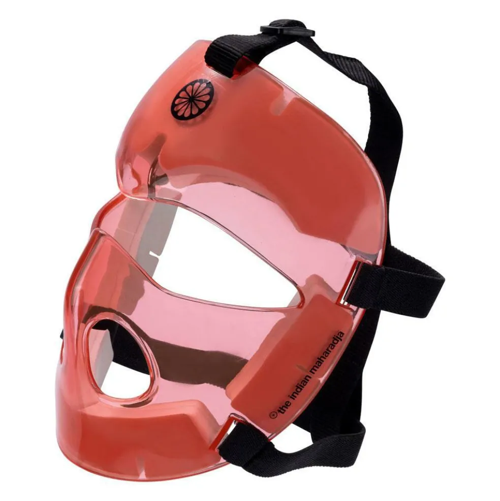 De The Indian Maharadja Corner gezichtsbeschermer in de kleur coral heeft verstelbare bandjes voor een comfortabele en veilige pasvorm. De gezichtsbeschermer beschermt het gezicht tijdens het verdedigen van een strafcorner. Het zicht wordt niet belemmerd, omdat het masker een heldere gekleurde afwerking heeft.