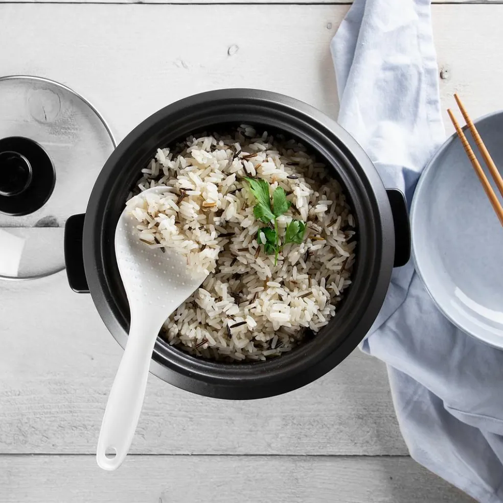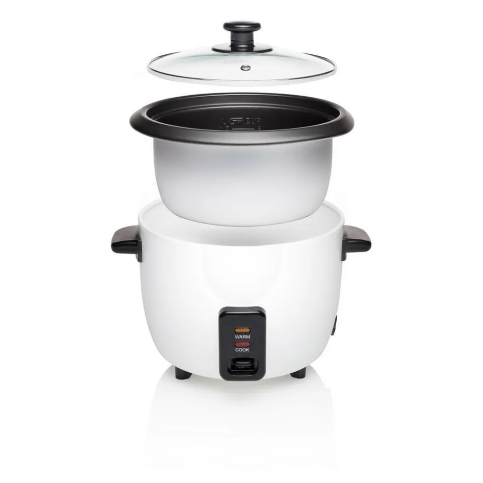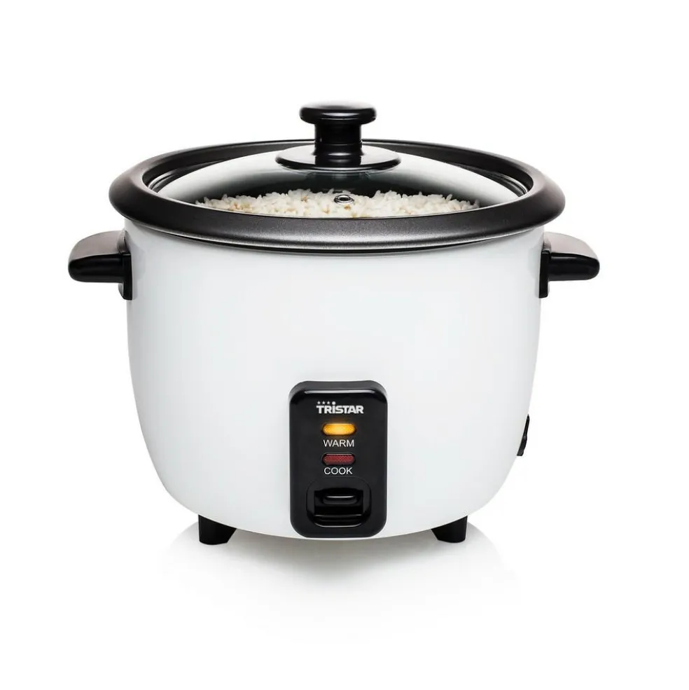 De RK-6117 rijstkoker van Tristar is een ideale toevoeging aan uw keuken. De rijstkoker is compact van formaat wat het ideaal maakt voor kleinere ruimtes. De rijstkoker is uitgerust met een binnenpan en komt geleverd met een maatbeker- en spatel voor het opscheppen en afmeten. Dankzij de warmhoudfunctie blijft de rijst nog uren warm na het koken en de antislipvoeten zorgen ervoor dat de rijstkoker stabiel staat.