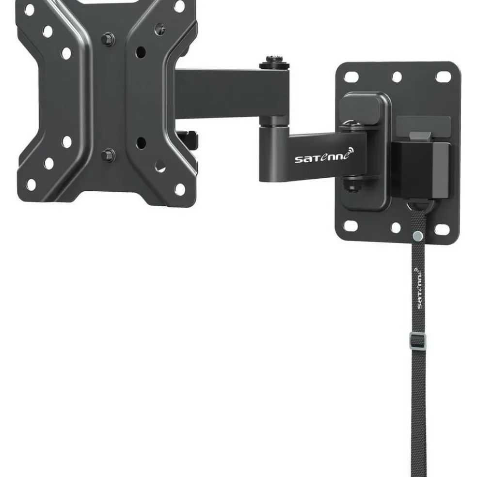 De Satenne EM-1000 TV televisiebeugel is ontworpen voor gebruik in campers en caravans. De beugel is een licht en stabiel TV ophangsysteem met slimme vergrendeling, drie draaipunten en een instelbare kijkhoek. De gebruiksvriendelijke vergrendeling van de EM-1000 zorgt ervoor dat de televisie tijdens het rijden stevig vastzit. Voor een optimale verticale kijkhoek is het ophangsysteem bovendien naar wens instelbaar. De beugel is geschikt voor alle LCD en LED TV’s van 10 inch tot en met 26 inch.