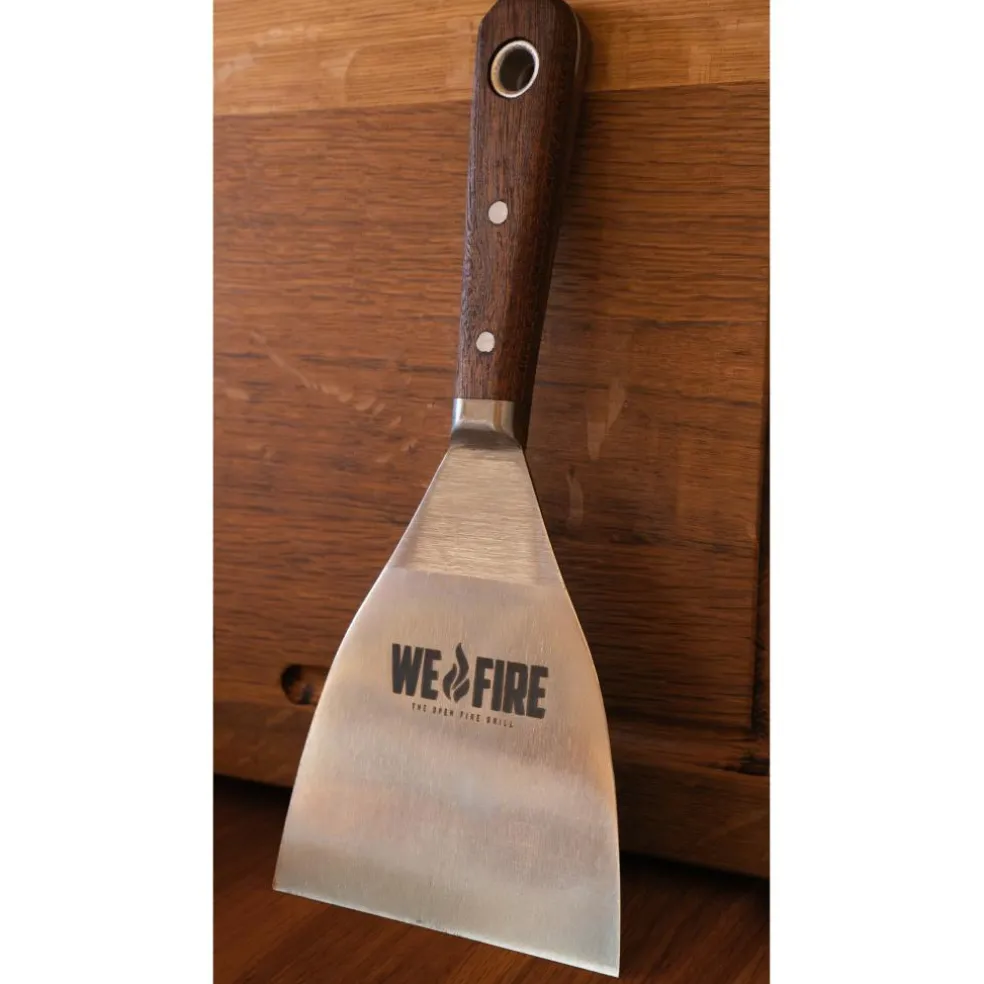 Draai uw vlees eenvoudig om met deze brede spatel 100 van WE Fire. De spatel is ook ideaal om uw bakplaat mee schoon te schrapen.